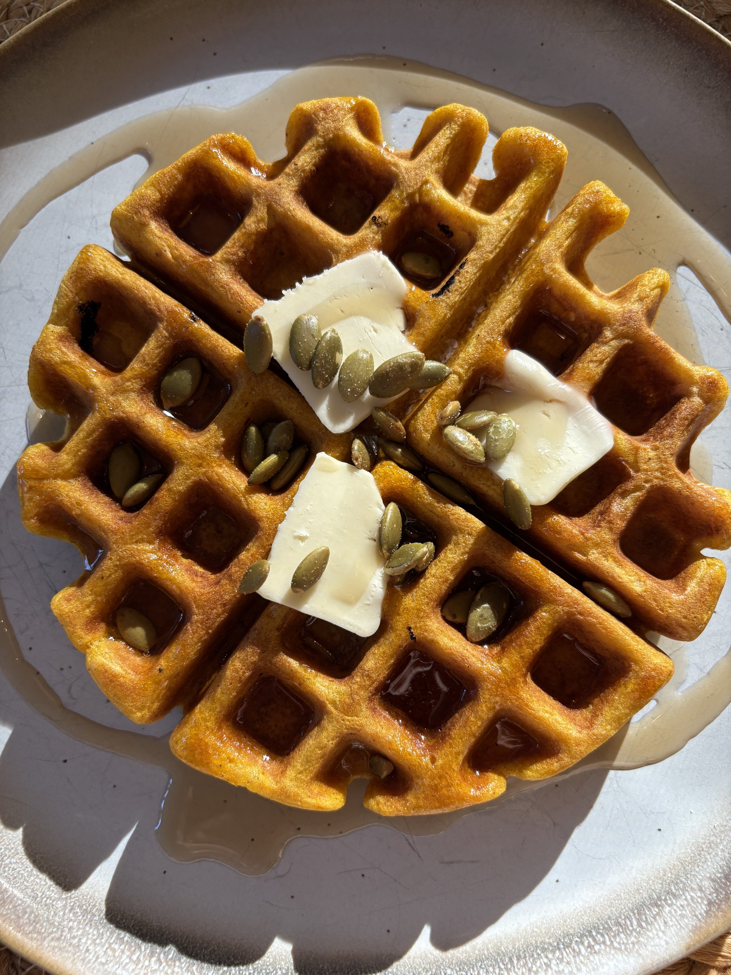 It’s apple season and I can’t wait to make an apple crumble and drink large amounts of apple cider. I’m starting to crave steamy bowls of soup and chili. I’ll pass on the pumpkin spice latte but give me a pumpkin spice waffle!