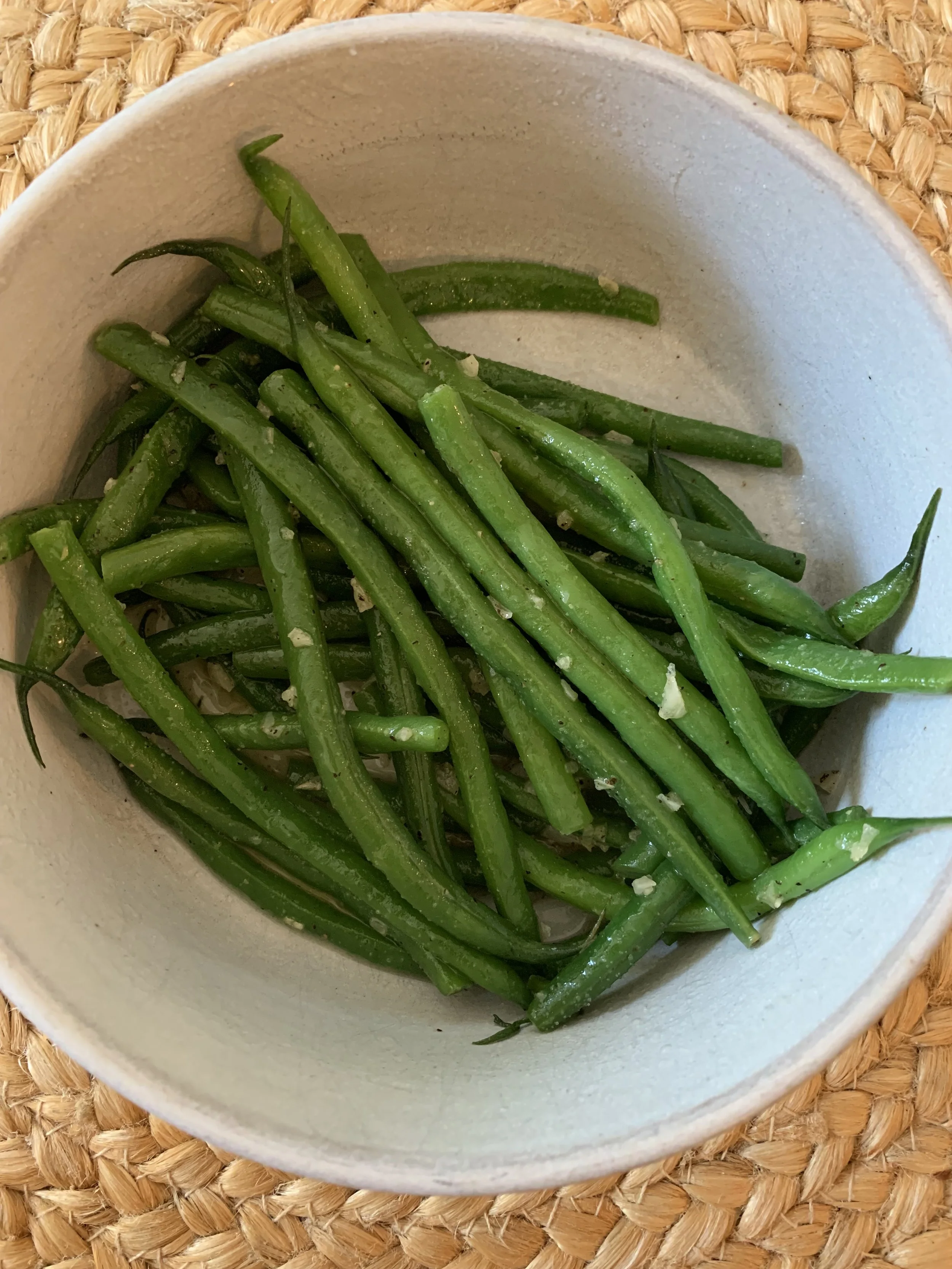Honestly, I don’t know for sure where I found this recipe. It’s just so easy and good. I found these beautiful bagged & washed beans at Trader Joe’s.