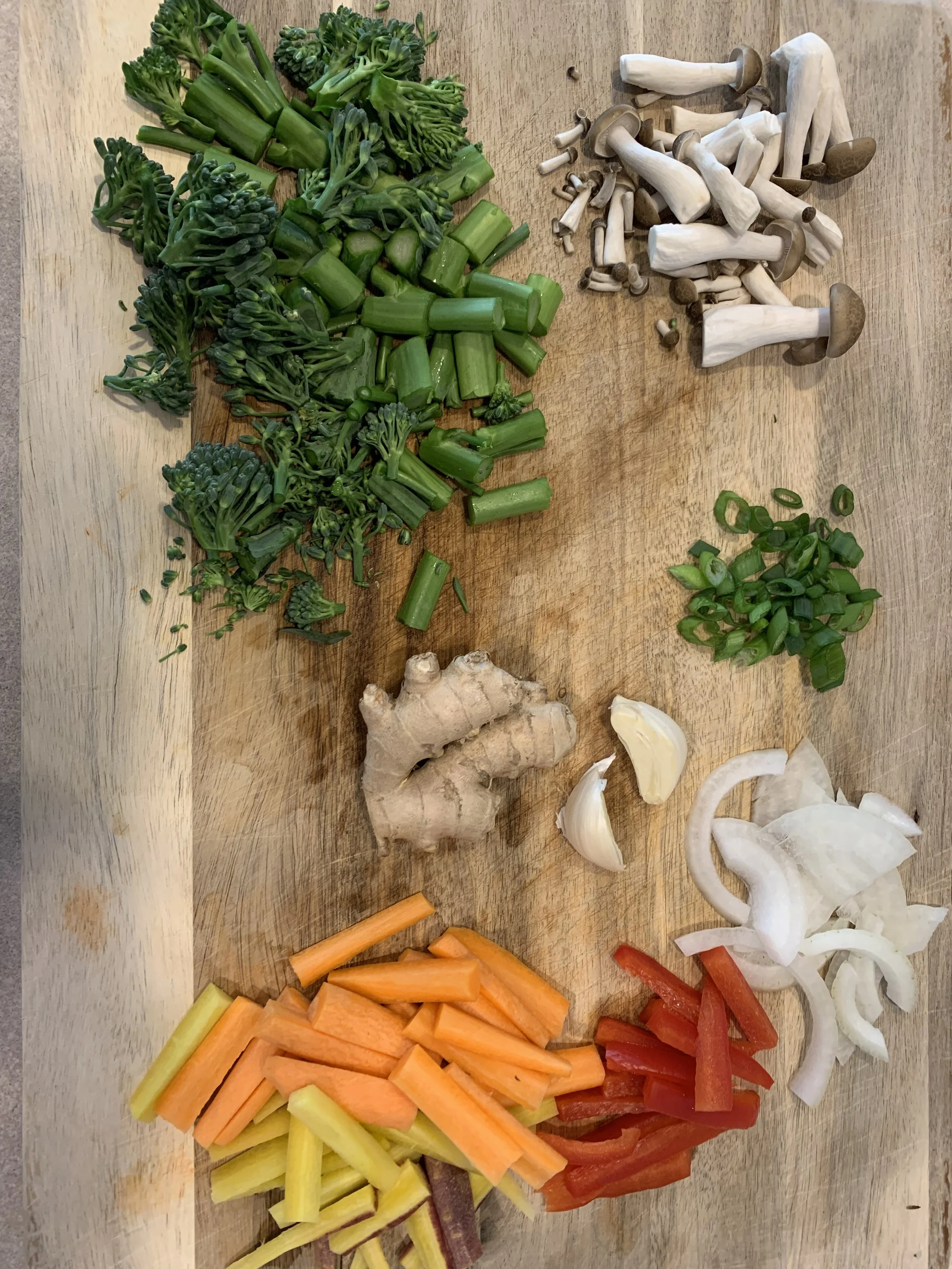 Sometimes, we just crave stir fry and this is so quick and easy! I still had plenty of the raw veg from the roasted veg recipe above. I added frozen edamame, fresh ginger, yellow onion and spring onions.