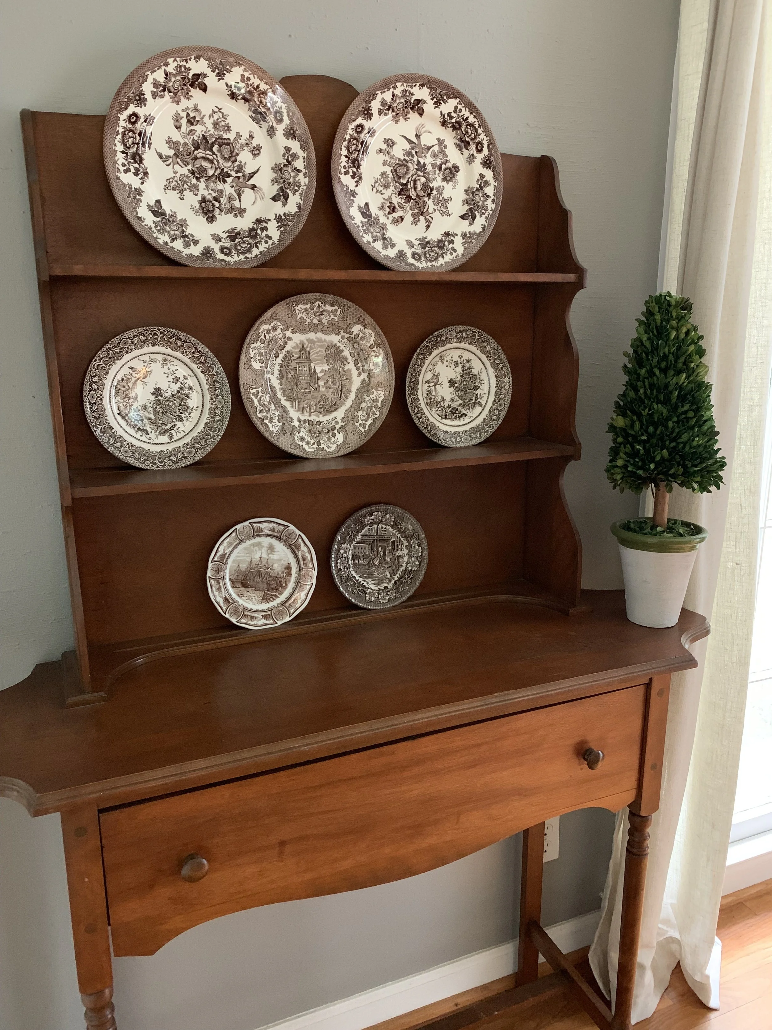 so glad we never painted this charming English reproduction cabinet and hutch…keep something long enough and it’ll come back in style…usually :)