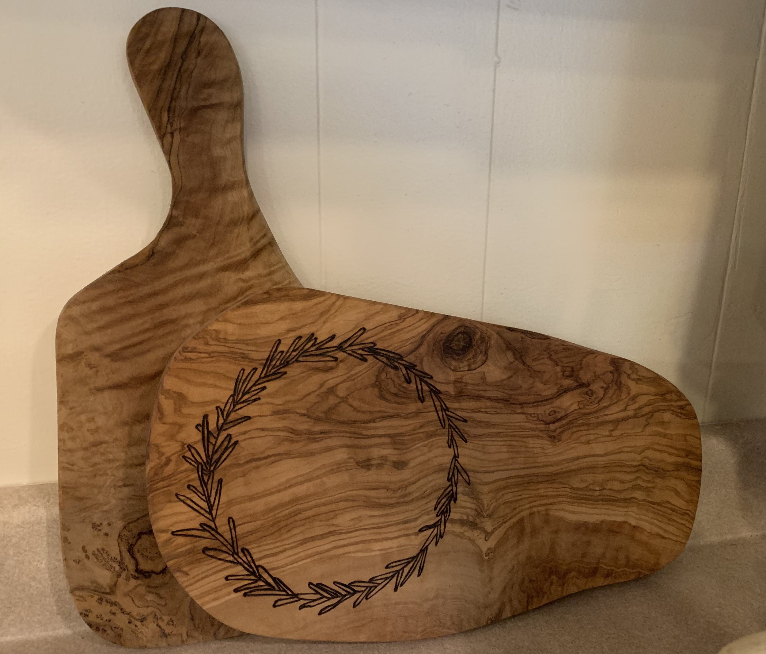 I wish you could smell these cutting boards! They are both made of olive wood and have that delicious fragrance. They come from two very different places but absolutely go together. The taller one in the back is from Marshalls, bought by me several years ago. The one in the front with the lovely rosemary wreath is from my oldest daughter. She found it in Brooklyn from an artist who “burns’ a design into boards. I love it so much and think of her every time I look at it. I have used these for charcuterie but I like to keep them on display, too.