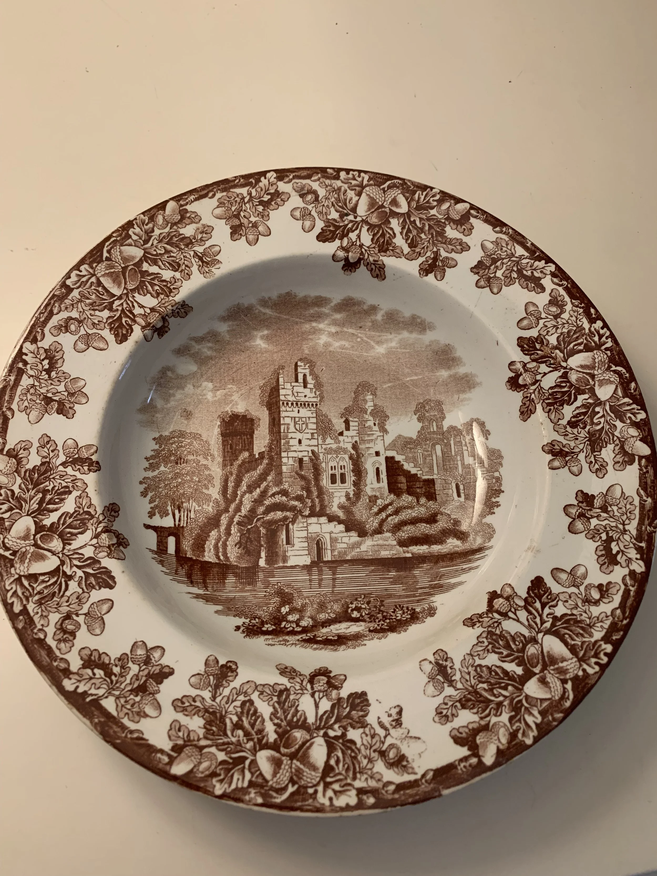 I love collecting brown transfer ware! Whenever I look at it, the brown tone makes me think of chocolate. It’s such a great neutral, too. I especially love this bowl, with the acorns on it, perfect for the autumn season. I honestly can’t remember where I found this one but it was probably at a vintage shop or on eBay. It’s W. T. Copeland & Sons “Stoke Upon Trent”. It’s pretty and functional…sometimes I put chocolates in it during the holidays.