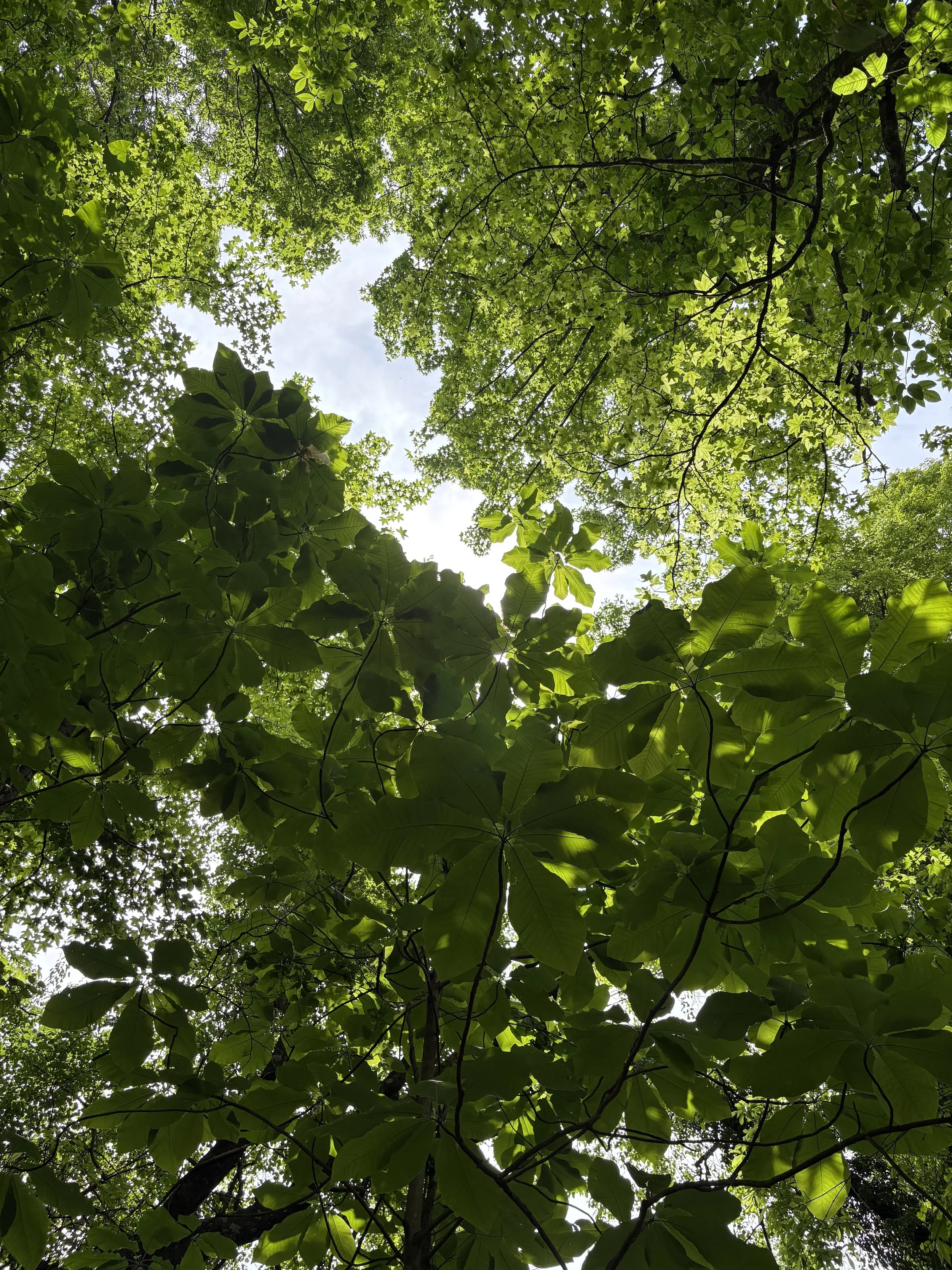 The tree canopy along the path at McCoy is gorgeous this time of year! The Big Leaf Magnolias are always stunning, with their huge, jungle-like leaves overhead. They are rare trees to find in common landscapes due to their size. They typically grow in river valleys in the southeast (and apparently on mountaintops, as well).