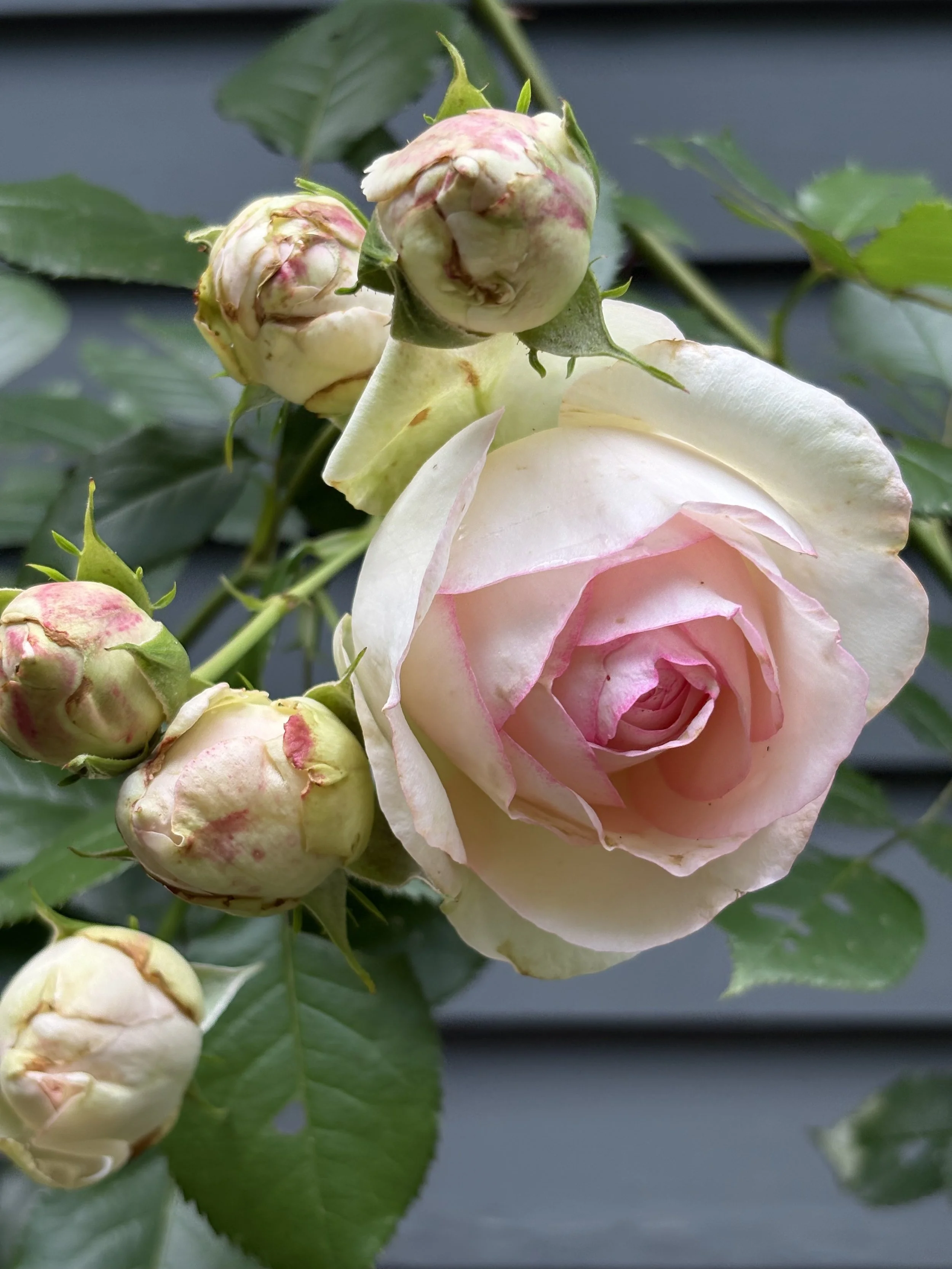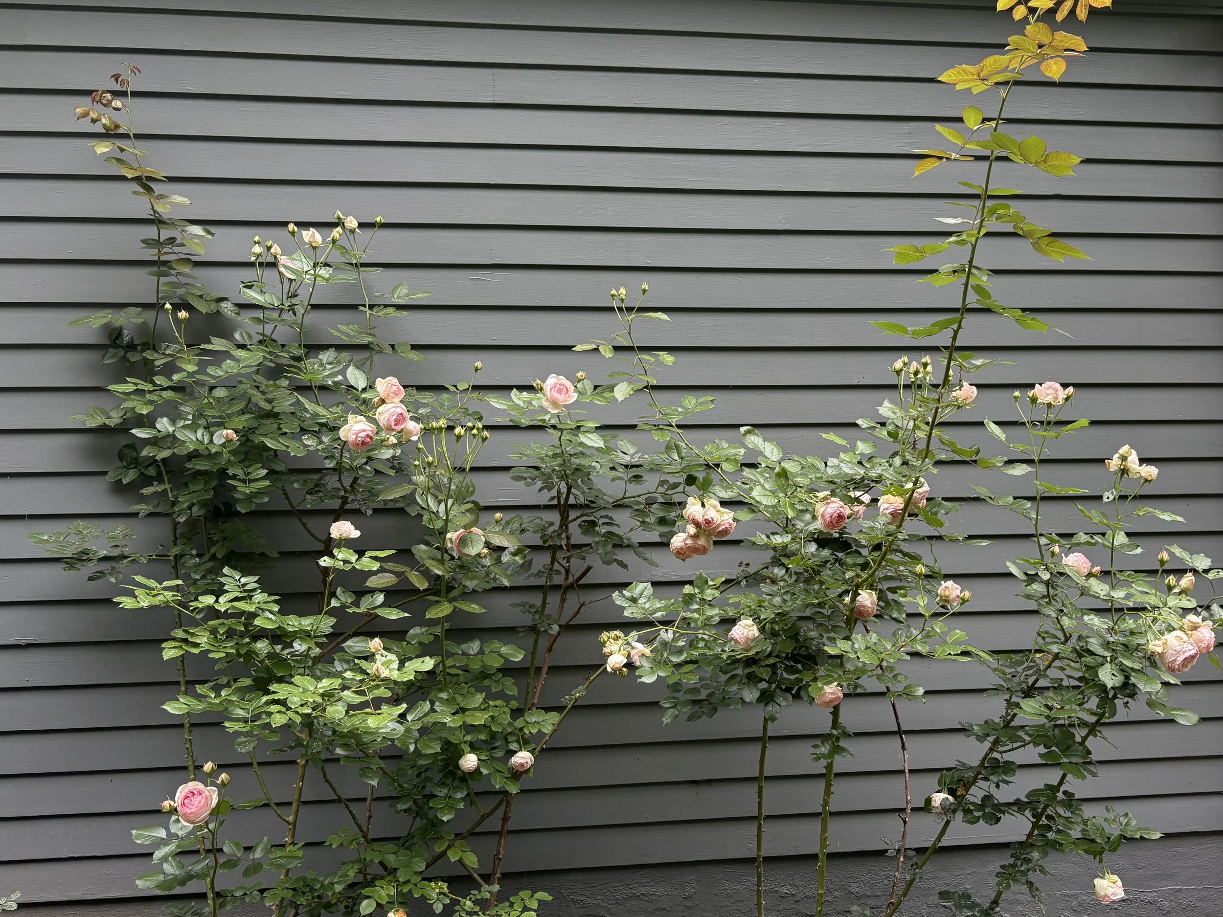 Our heirloom roses bloomed their heads off this year! We’ve never had so many buds and blooms on these climbers. They have a sweet, light scent.