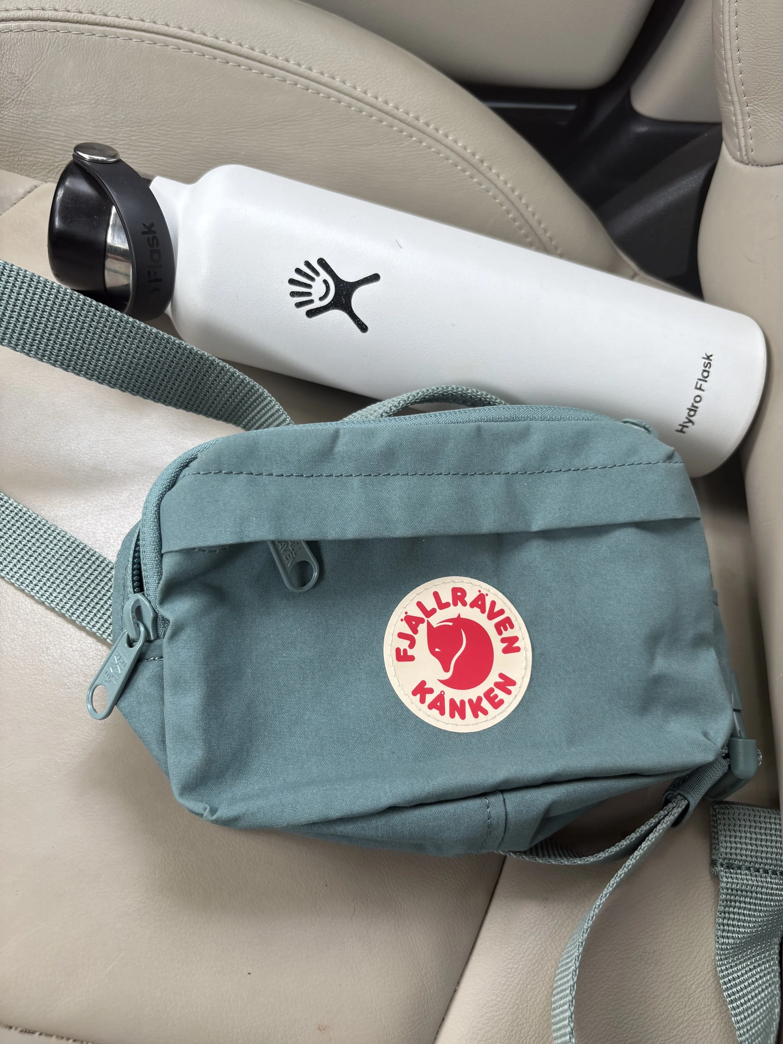 I’d recommend these two. The Hydro Flask with ice-cold water and the adorable Fjallraven fanny pack really come in handy for short walks in the woods.